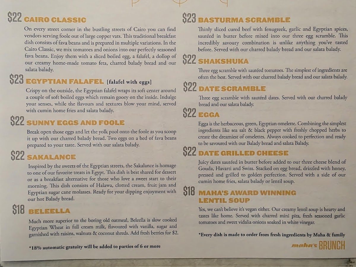 The menu at Maha's Brunch is a tapestry of creativity, with each dish reflecting a passion for bold flavors and fresh ingredients. The cozy, welcoming ambiance further elevates the dining experience, making it a must-visit for brunch enthusiasts in Toronto.